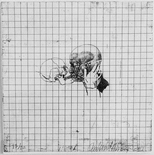 «Embrasse-moi jusqu'à l'usure», 2014, eau-forte inspirée des paroles de chanson du groupe Avec pas d'casque, 15 x 15 cm